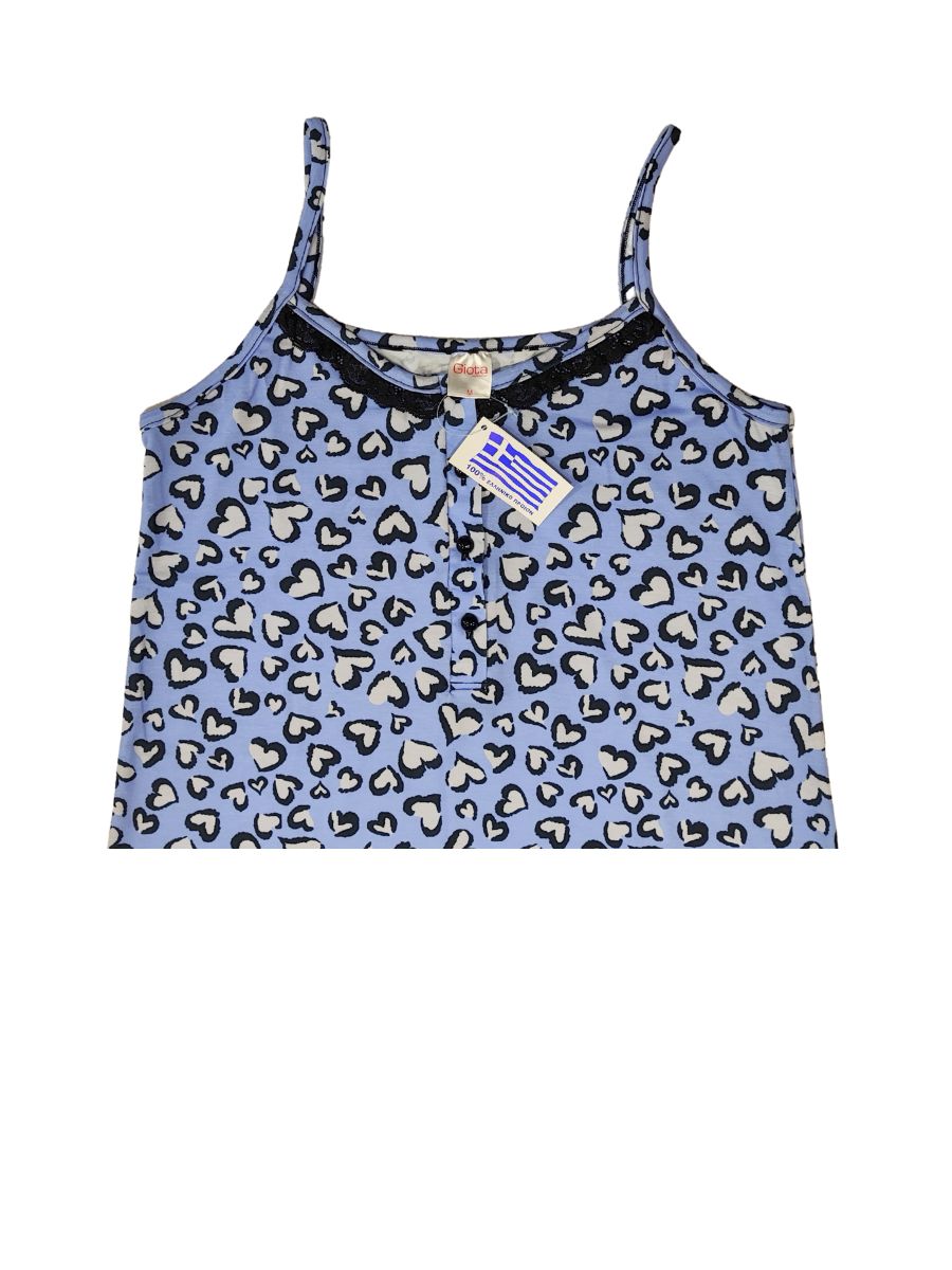 Giota Homewear Νυχτικό με Τιράντες Και Καρδιές, Βαμβακερό Γαλάζιο 4567