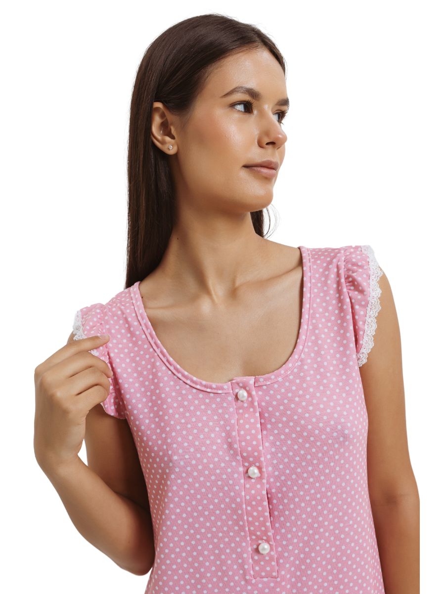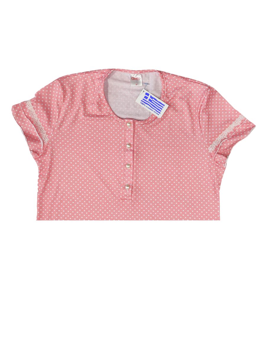 Νυχτικιά Giota Homewear Πουά Κοντομάνικη 100% Βαμβάκι Ροζ 4534